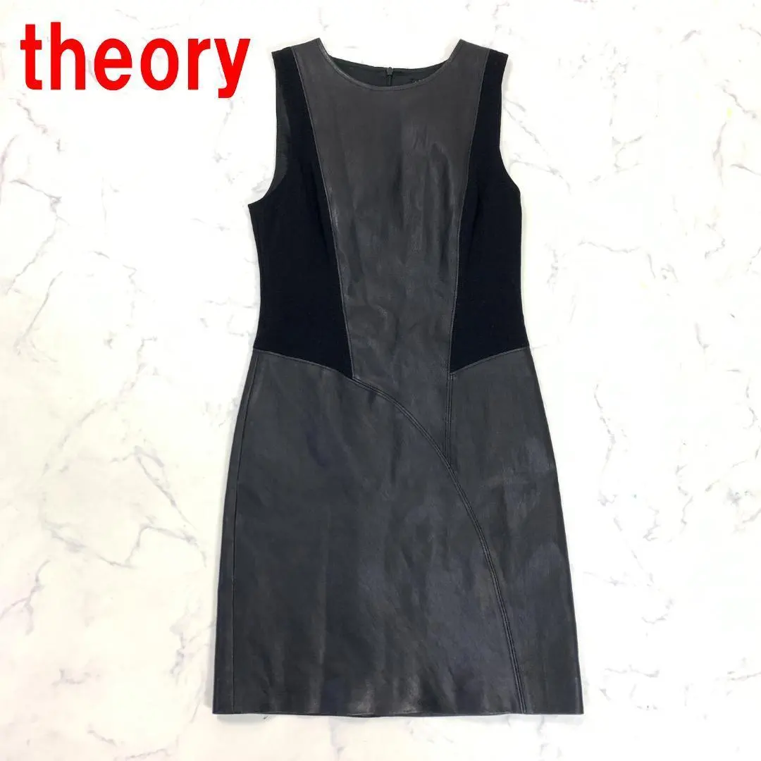 A6041 セオリー ひざ丈ワンピース ノースリーブ レザー タイト 黒 0