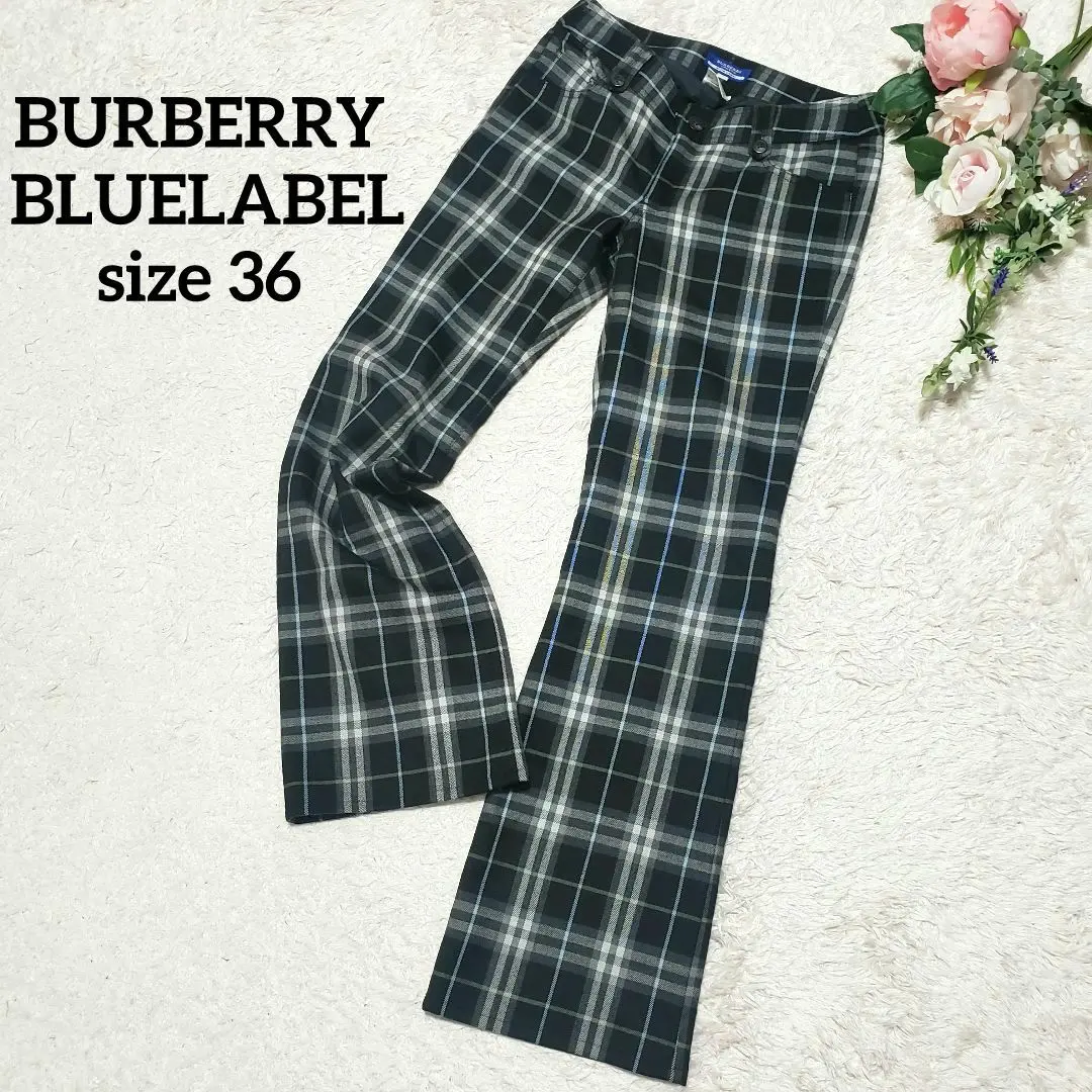 バーバリーブルーレーベル ノバチェック ホースロゴ ウール混フレアパンツ