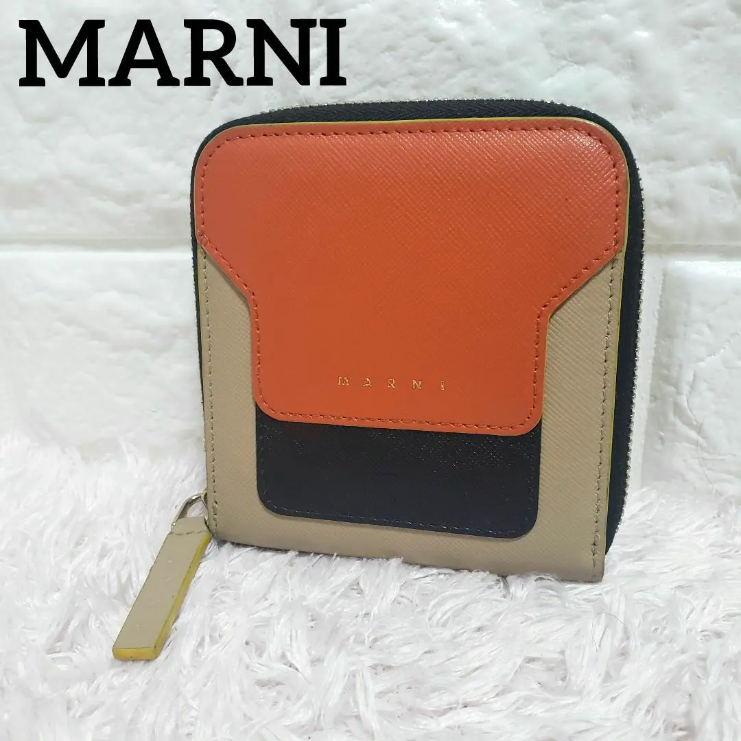 MARNI マルニ バイカラー切り替え ラウンドファスナー折り財布