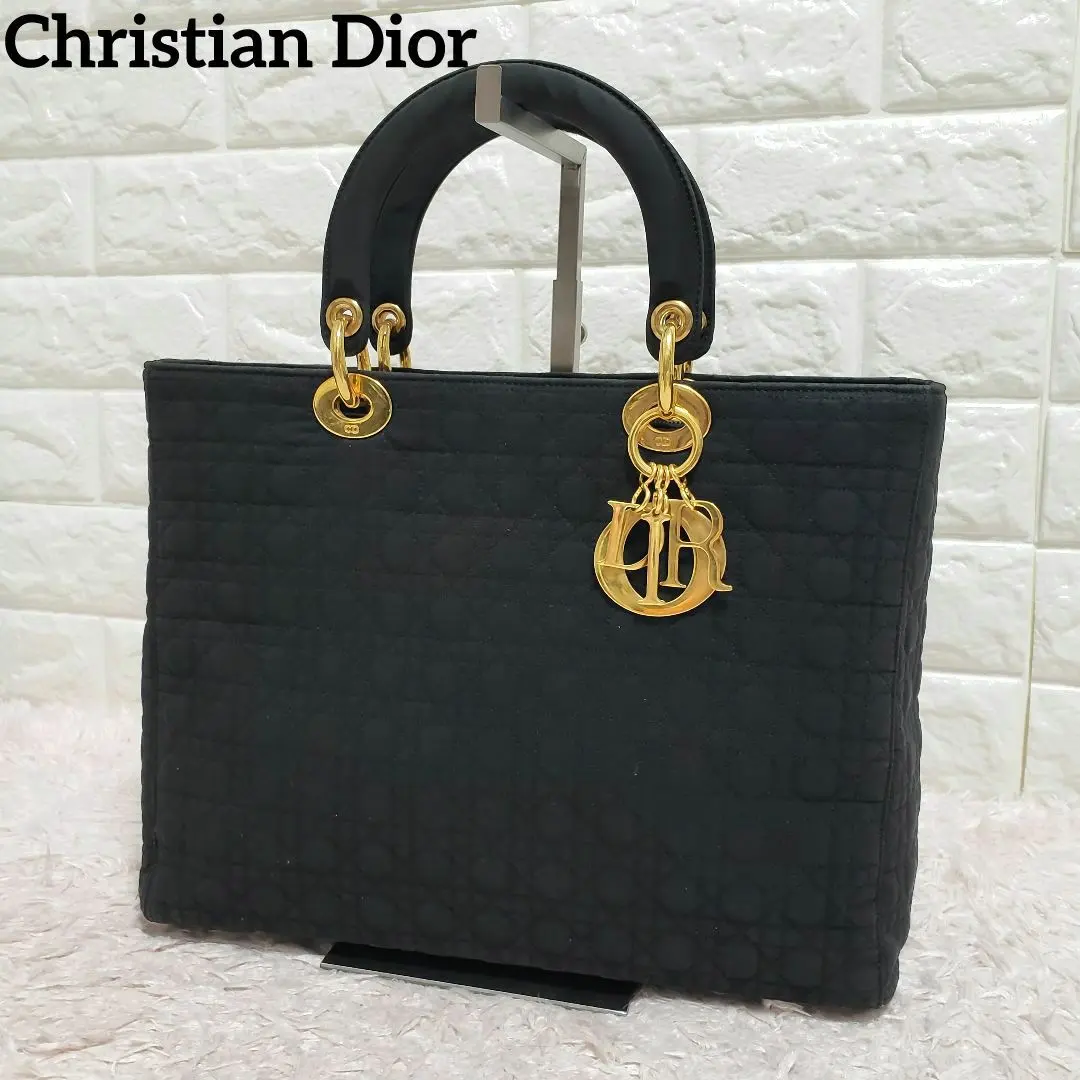 Christian Diorカナージュハンドバッグ ナイロンキルティングブラック