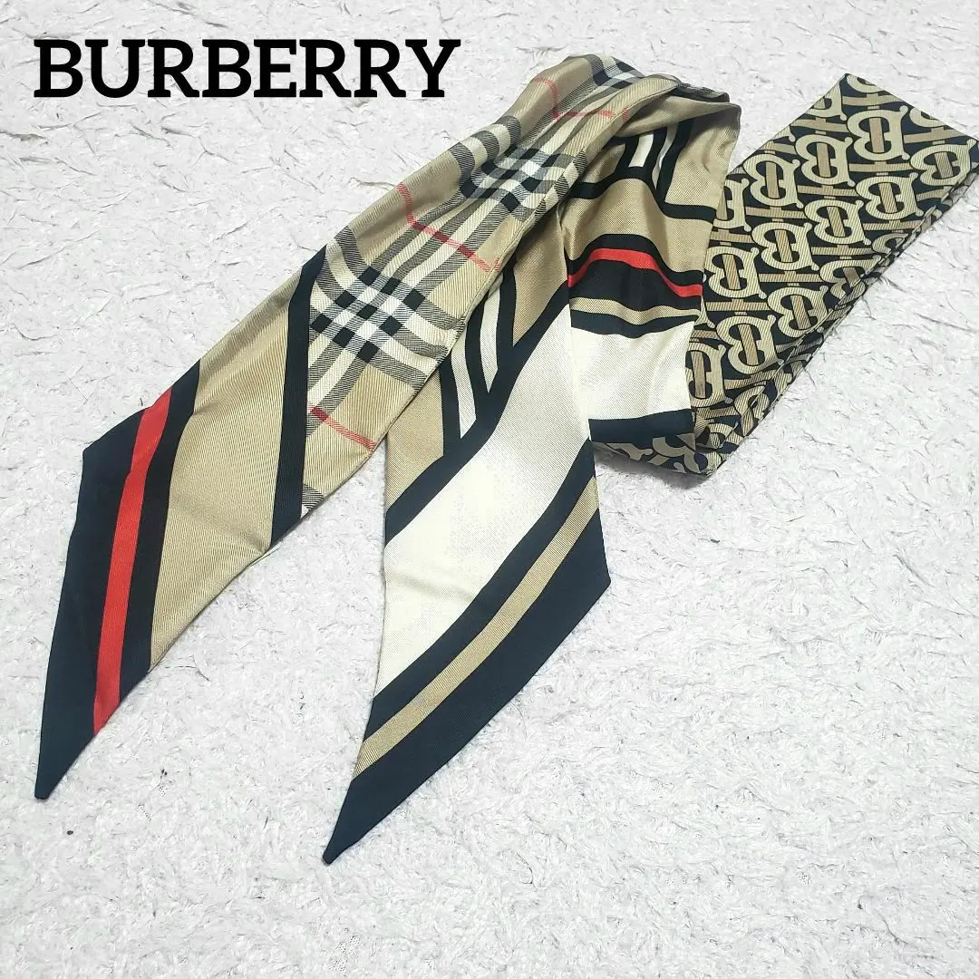 バーバリー BURBERRY スキニースカーフ ノバチェックTBロゴ 美品