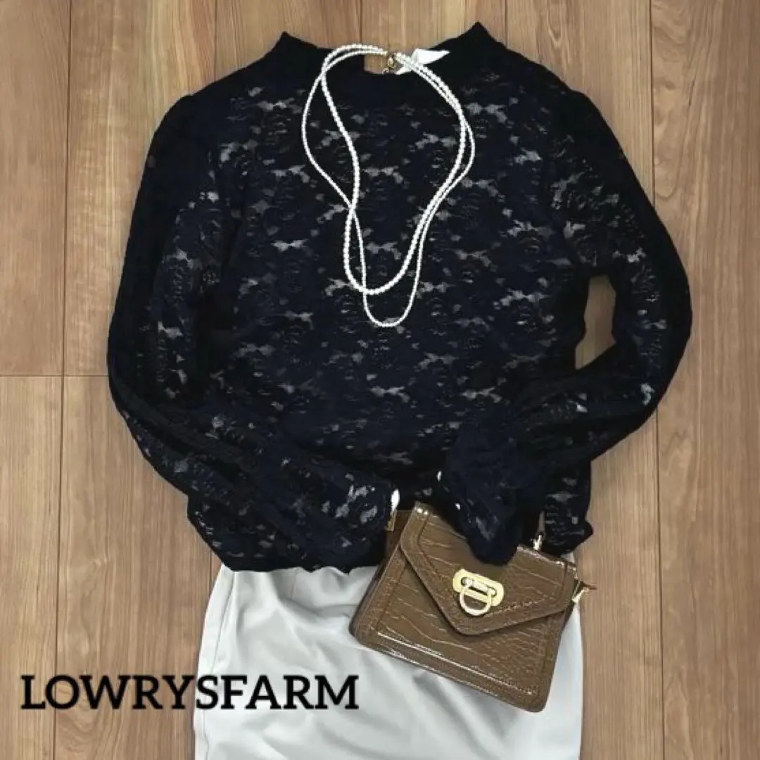LOWRYSFARM レース 長袖トップス 黒 Mレーストップス オフィス