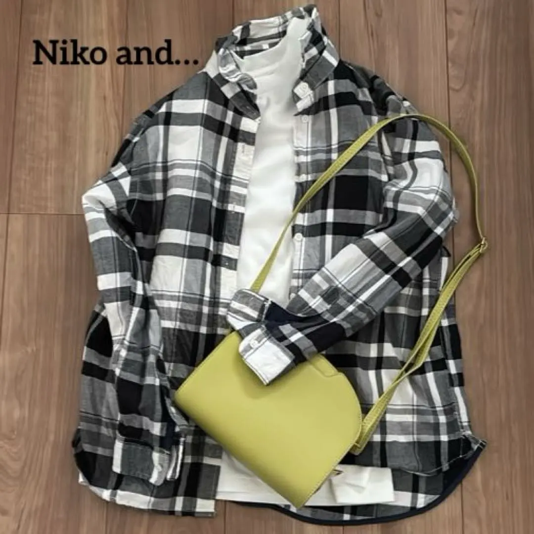 Niko and…長袖チェック柄シャツ ブラック・ホワイト チェック ニコアンド