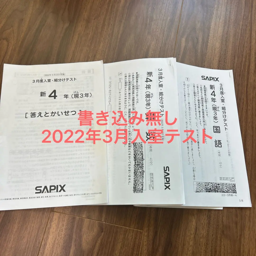 サピックス新4年新学年入室・組分けテスト2022年3月 原本