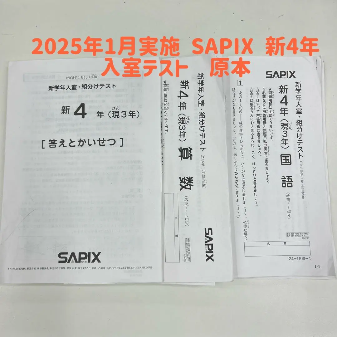 2025年1月実施 SAPIX 新4年(現3年)入室・組分けテスト国語算数 原本