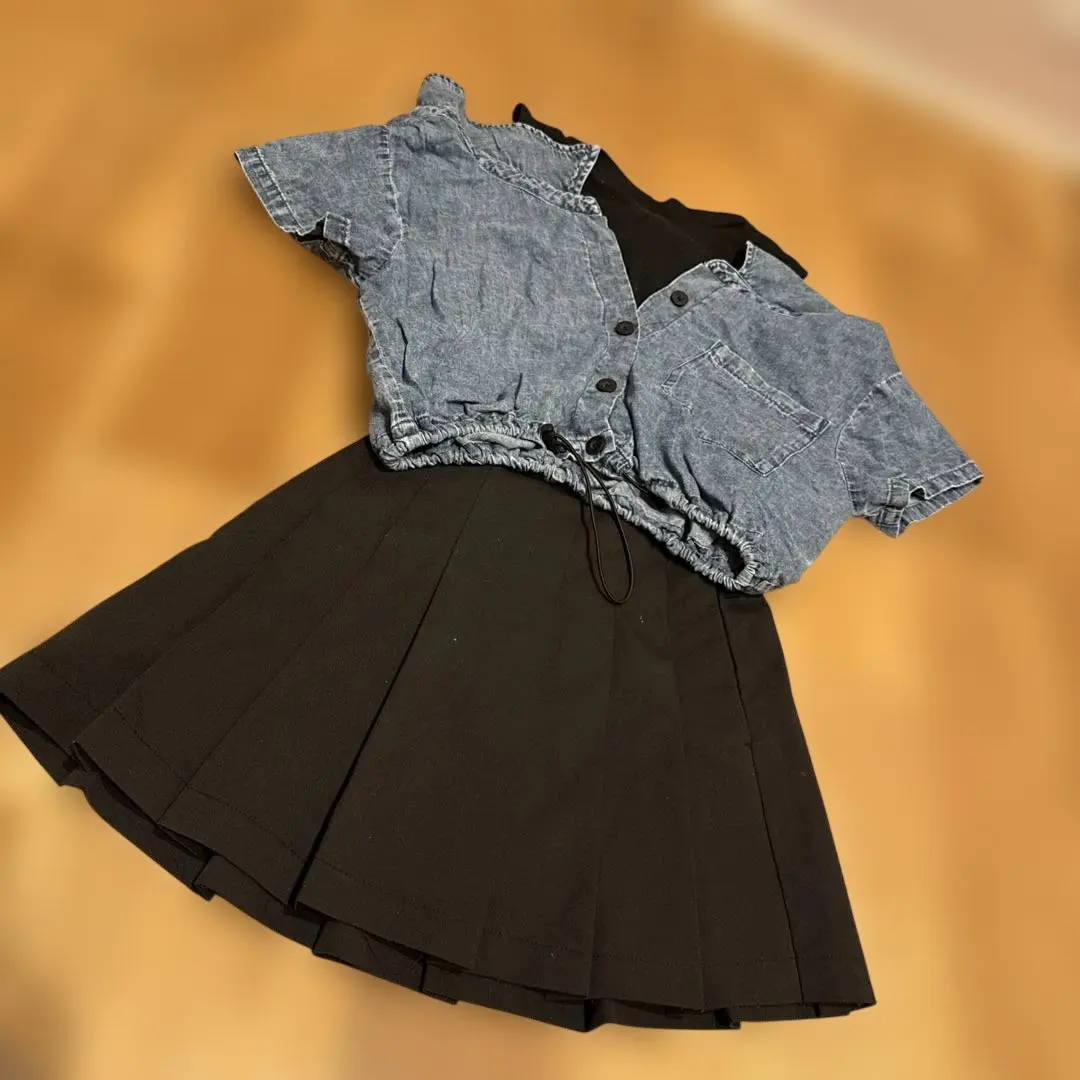 LOWRYS FARM ブラック プリーツスカート 黒ミニスカート 140cm