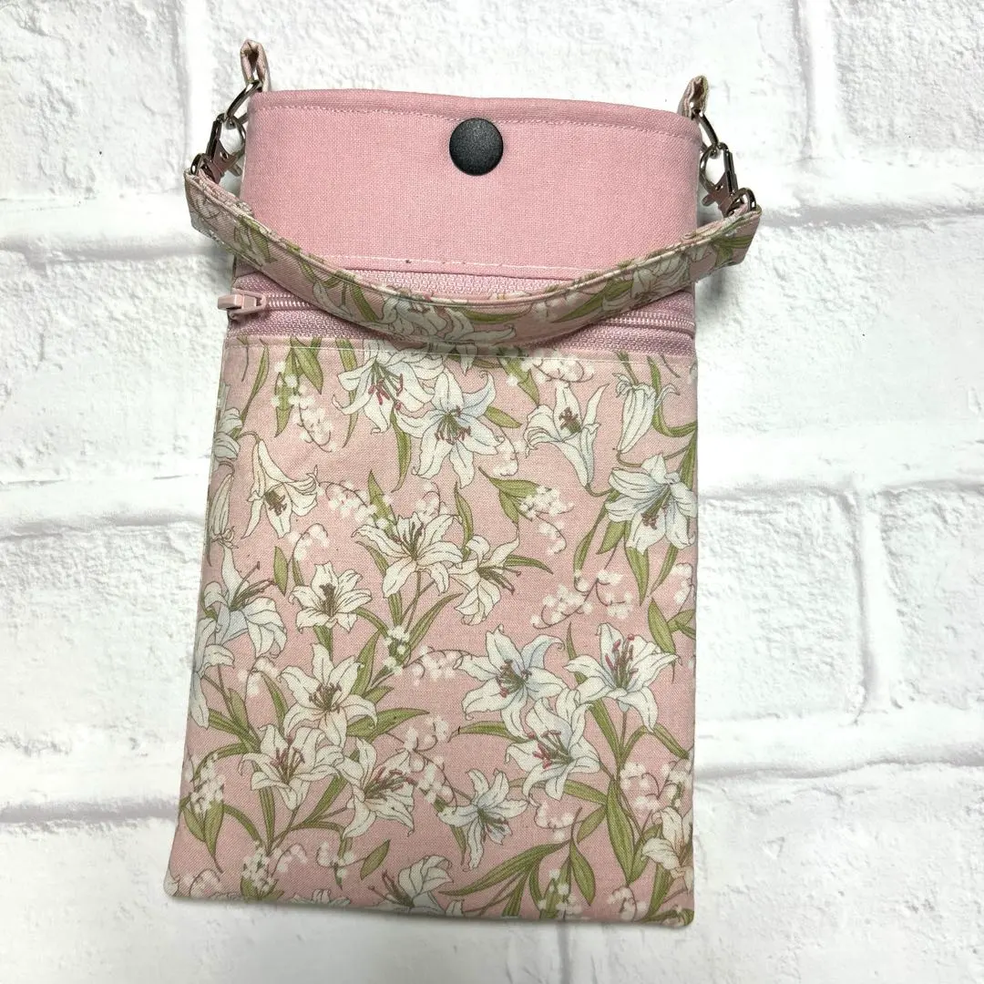 ノスタルジア リリー 花柄 ピンク スマホポーチ ハンドメイド