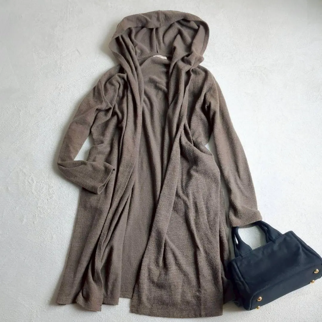 サマンサモスモス◇ロングカーディガン フード付 ガウン ナチュラル ニット M