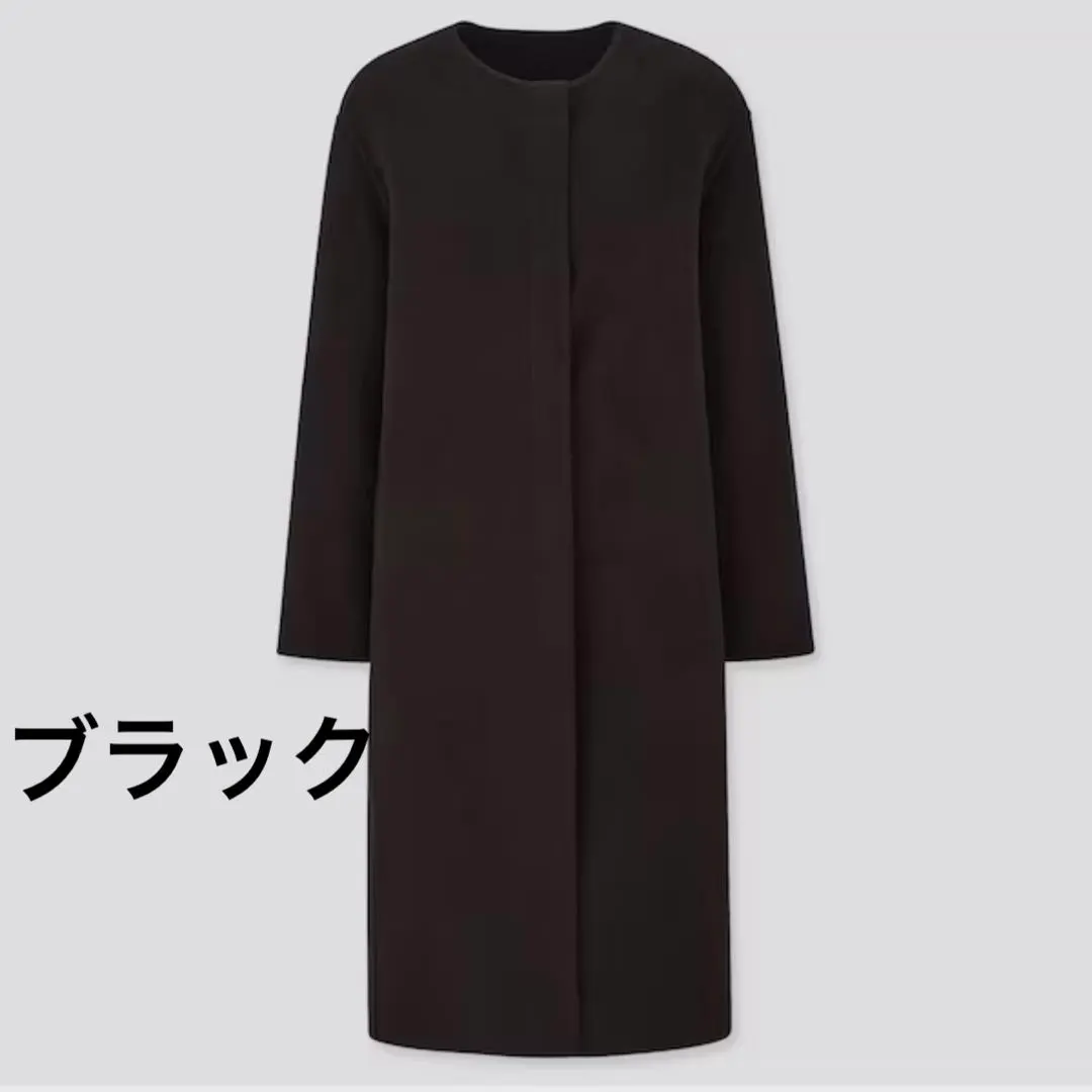 ユニクロ◇ダブルフェイスノーカラーコート 比翼アウター ウール混 ブラック
