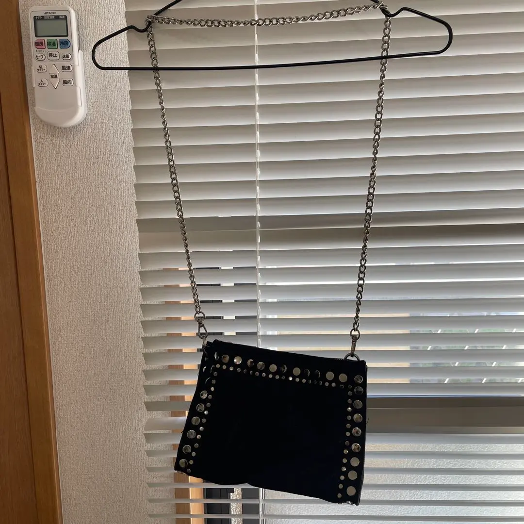 スタッズ装飾 ブラックスエード ショルダーバッグ