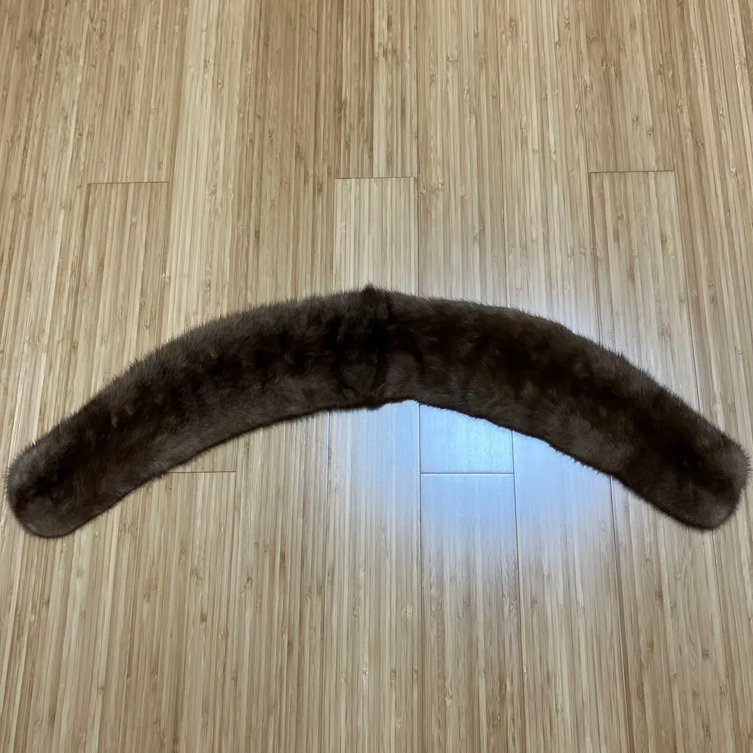 【難あり】毛皮マフラー 襟巻き こげ茶色約78㎝留め具なし