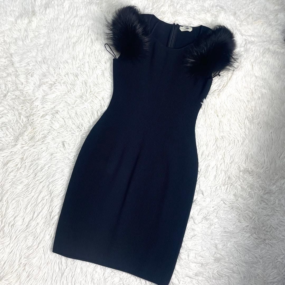 フェンディ FENDI ミンク付き ワンピース ノースリーブ 毛皮 ファー 黒