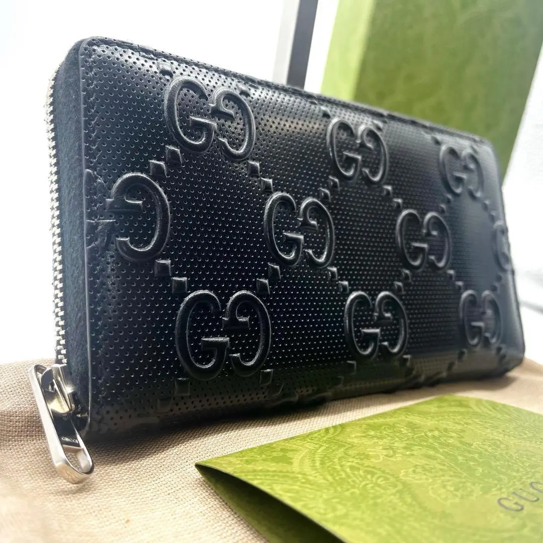 ほぼ未使用✨グッチ 長財布 ラウンドファスナー エンボスロゴ ジャンボGG 黒