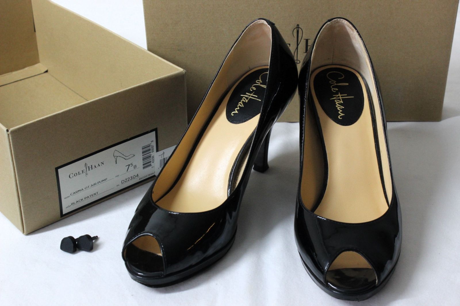 H14【美品】Cole Haan コールハーン パンプス 7 1/2B 24.5cm 黒 ブラック エナメル オープントゥ パテント NIKE AIR ★美品★