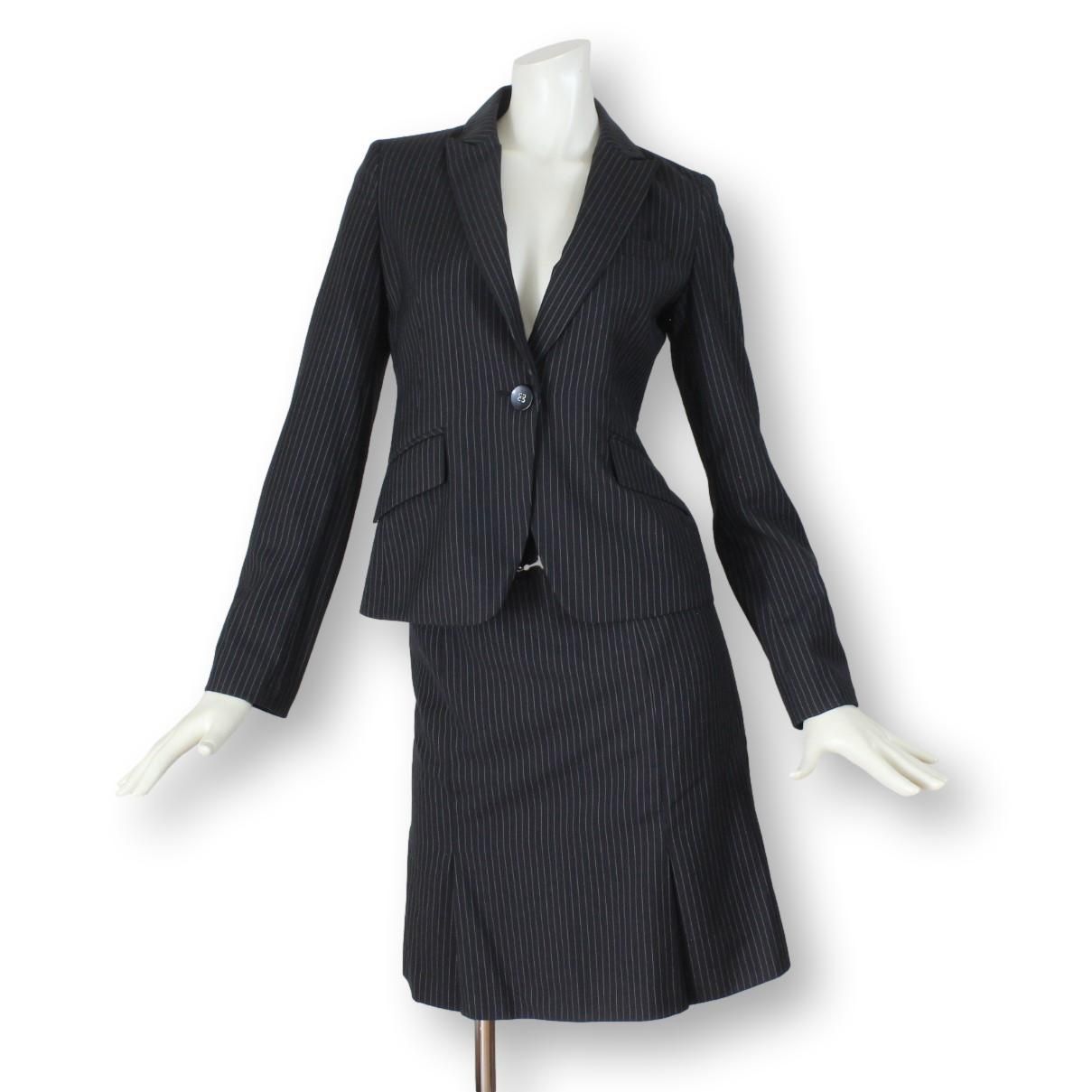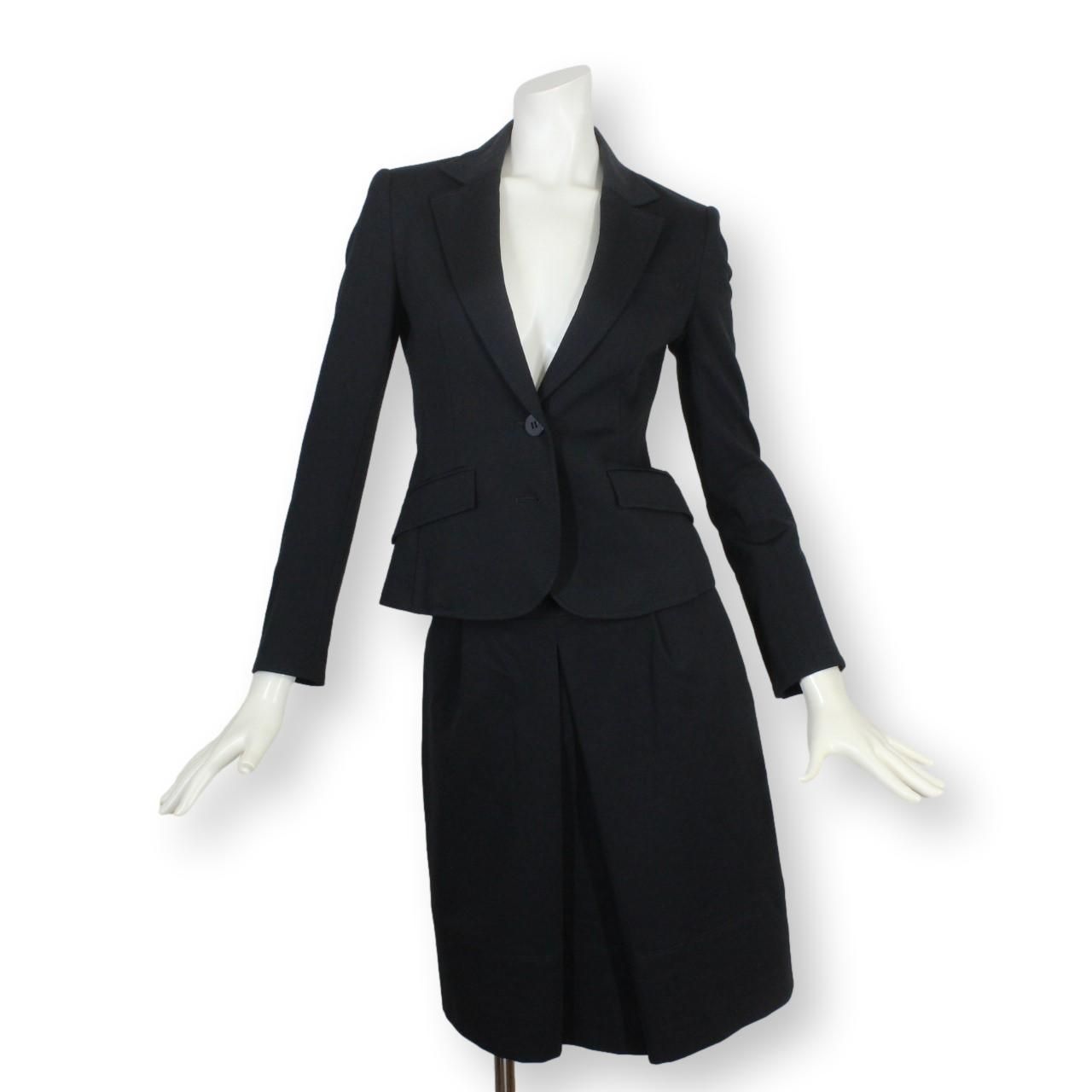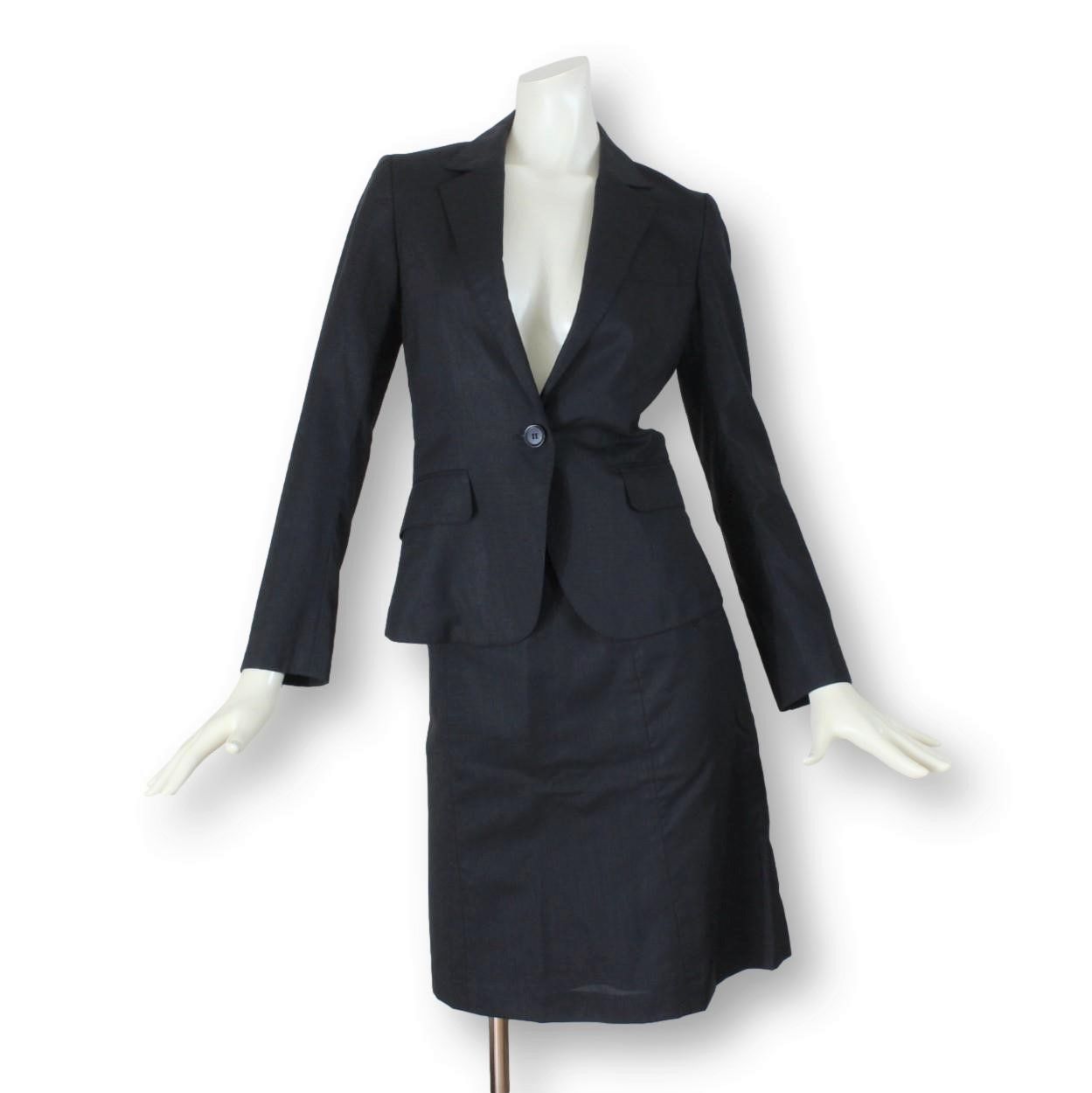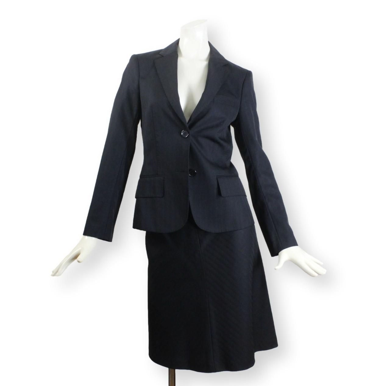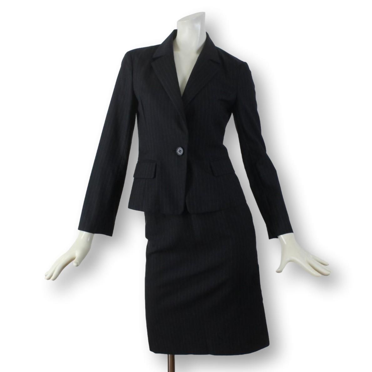 15【美品】ザ スーツカンパニー THE SUIT COMPANY レディース スカートスーツ 38 黒 M イタリア製ウール生地 Lanificio T.G. di Fabio