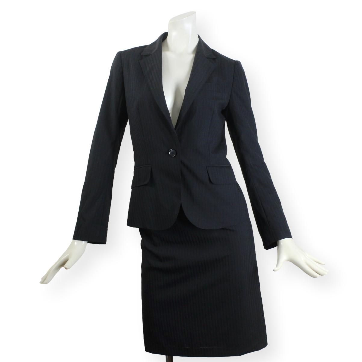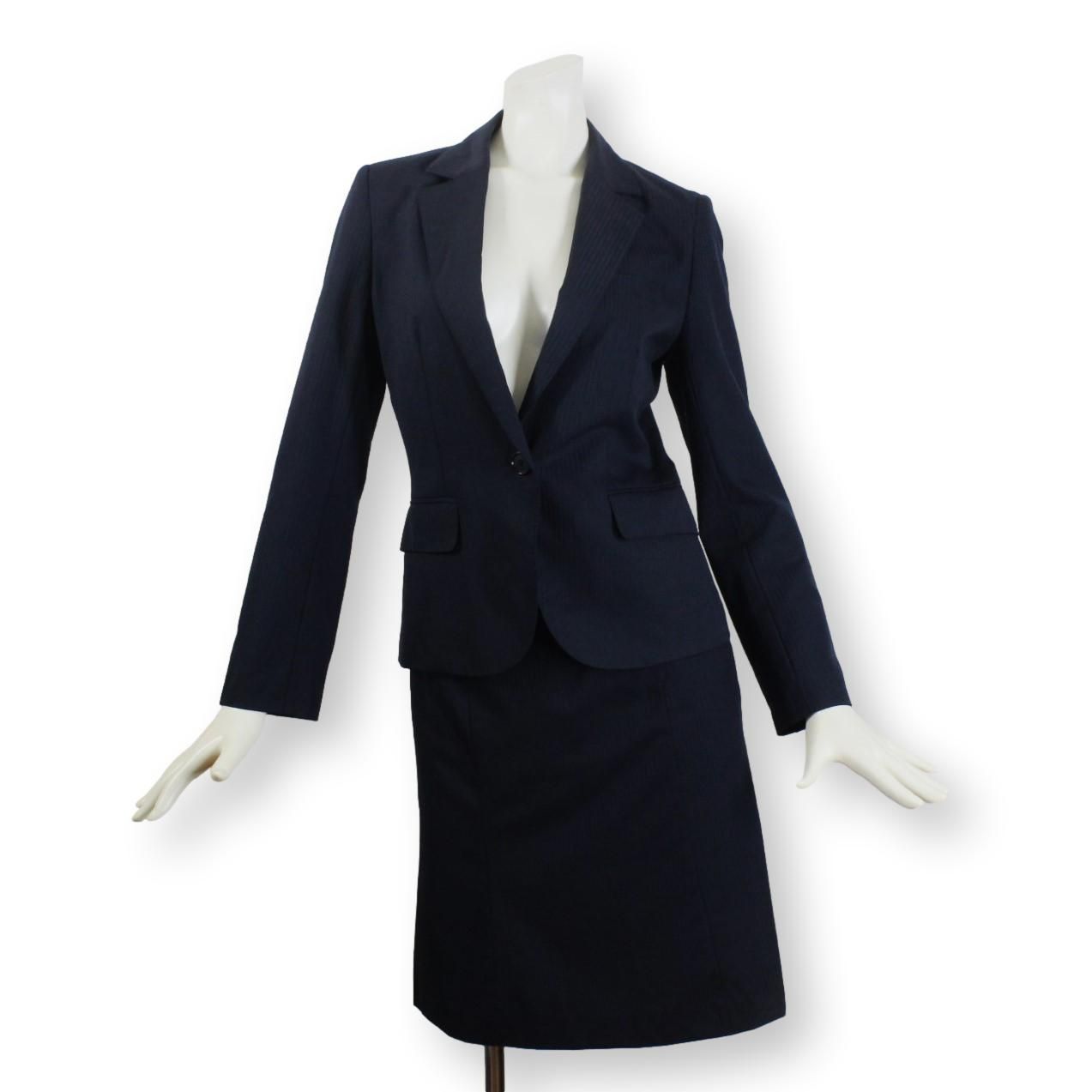 13【美品】ザ スーツカンパニー THE SUIT COMPANY レディース スカートスーツ 上38 下36 ネイビー M ウォッシャブル Micro Fiber Spun