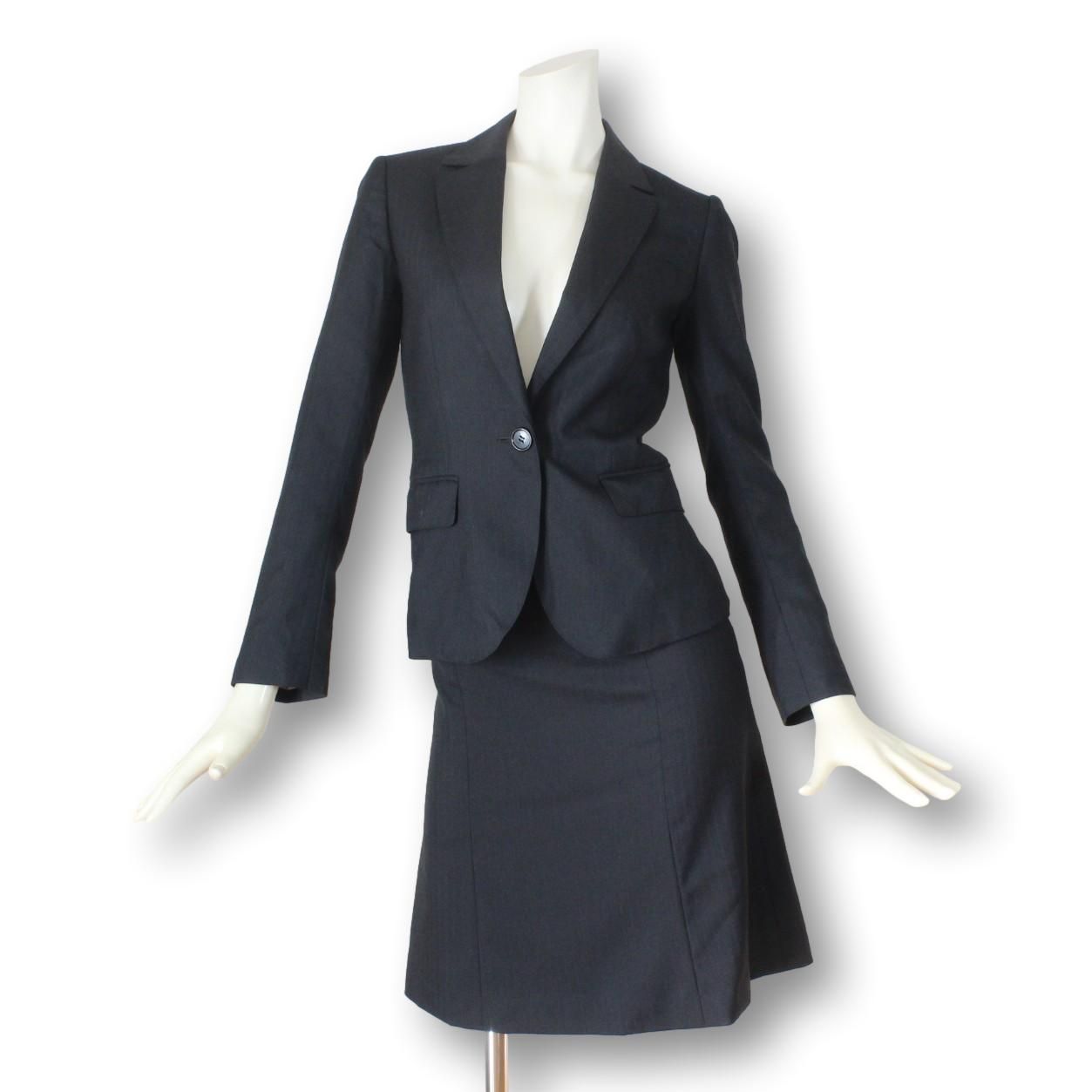 19【極美品】ザ スーツカンパニー THE SUIT COMPANY レディース スカートスーツ 上38 下36 グレー 上M 下S THERMO LITE 優れた保温性