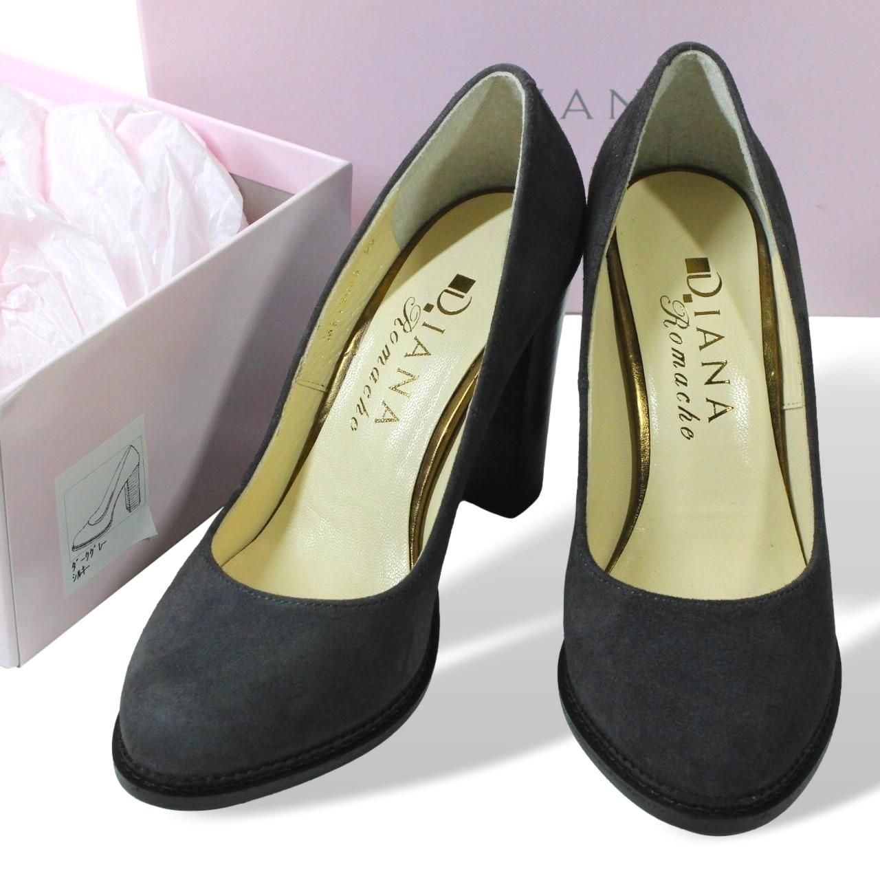 H16【極美品】DIANA ダイアナ Romache ロマーシュ レディース パンプス 22.0cm ダークグレー スエード シルキー ヒール 専用箱付き