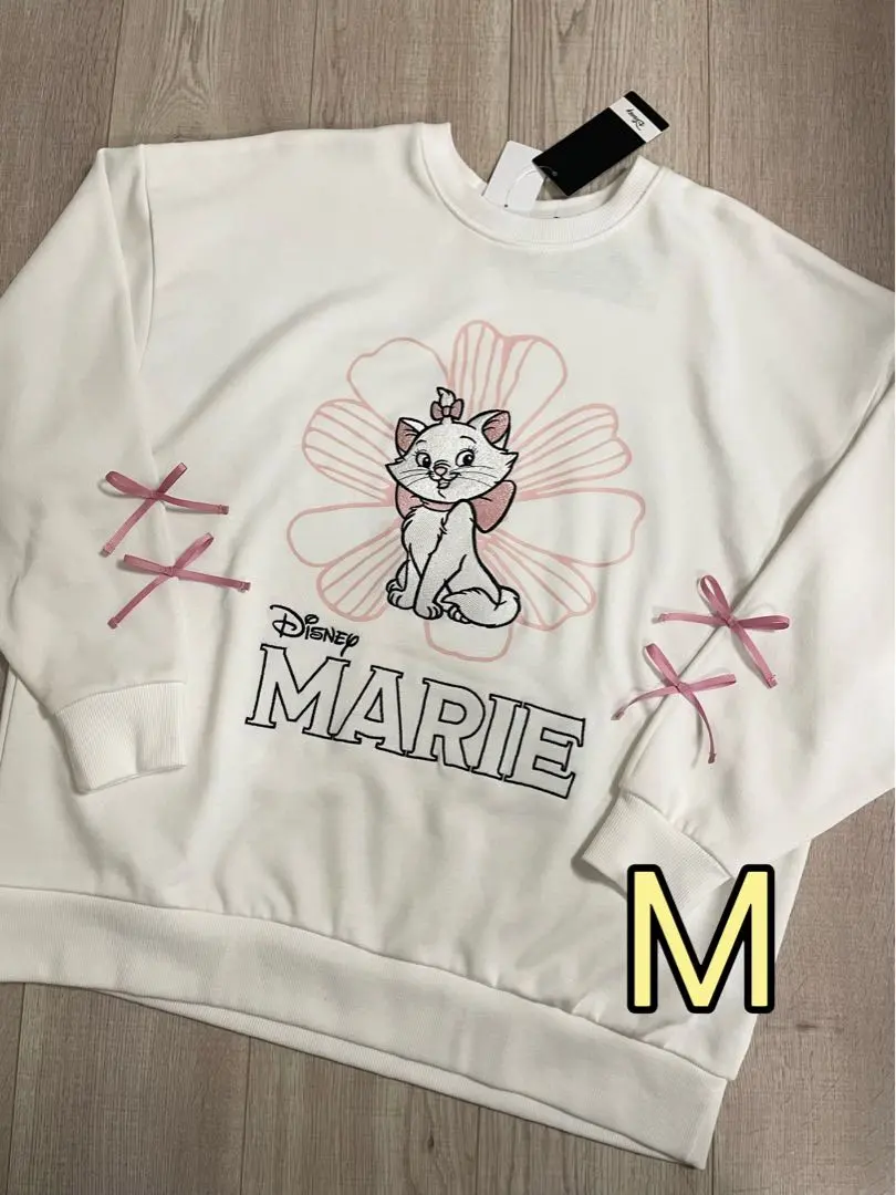 ディズニー おしゃれキャット マリー 裏毛 刺繍 トレーナー ホワイト M