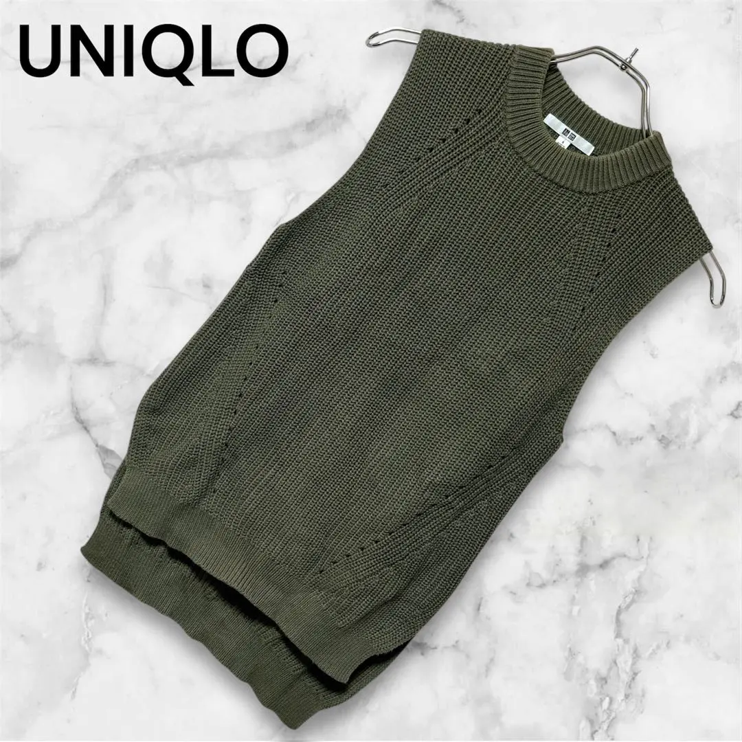 【UNIQLO】オリーブ ニットベスト (S) カーキカラー ノースリーブ