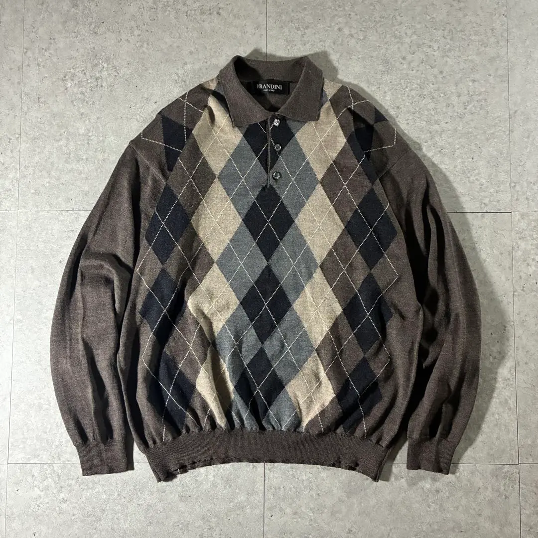 イタリア製BRANDINIアーガイル柄ニットポロシャツブラウン短丈海外ストリート