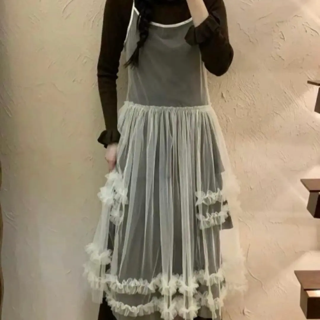 Achic フリルヘムチュールキャミワンピース レイヤード