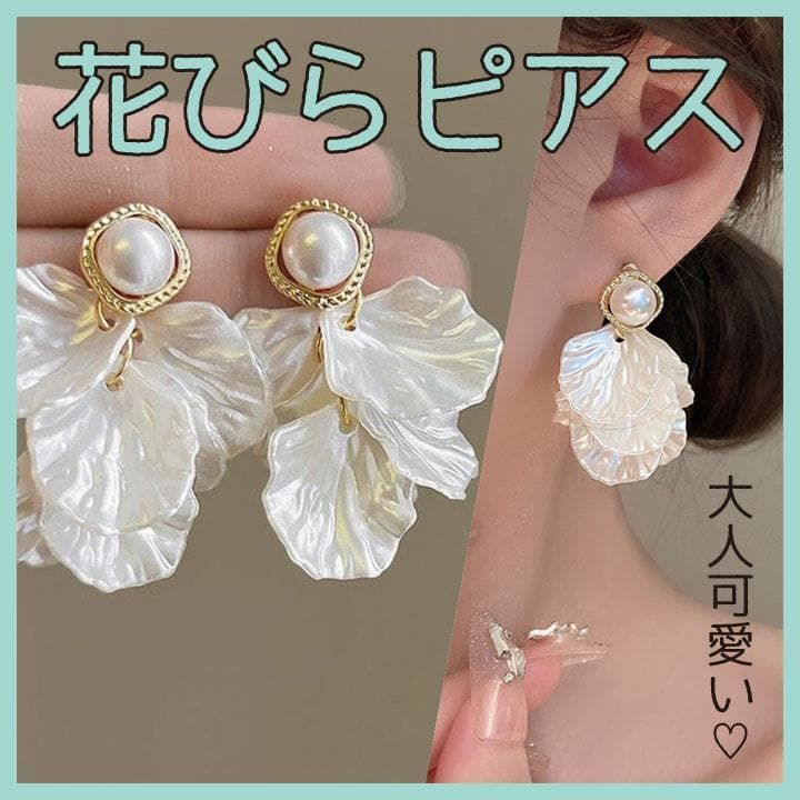 ホワイト ゴールド 花びらピアス パール ピアス アクセサリー ウェディング