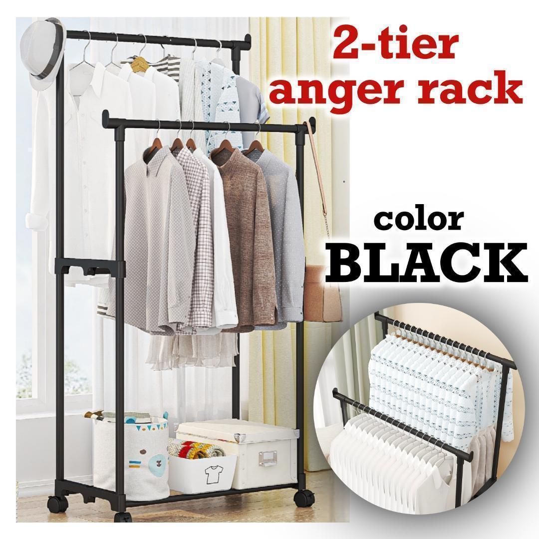 ハンガーラック 2段 ダブル 黒 ブラック キャスター付き コンパクト