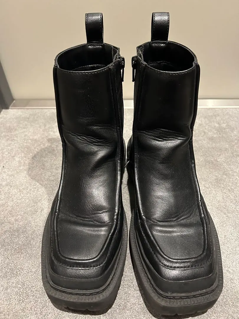 カスタネ 黒 厚底ロングブーツ ジッパー付き