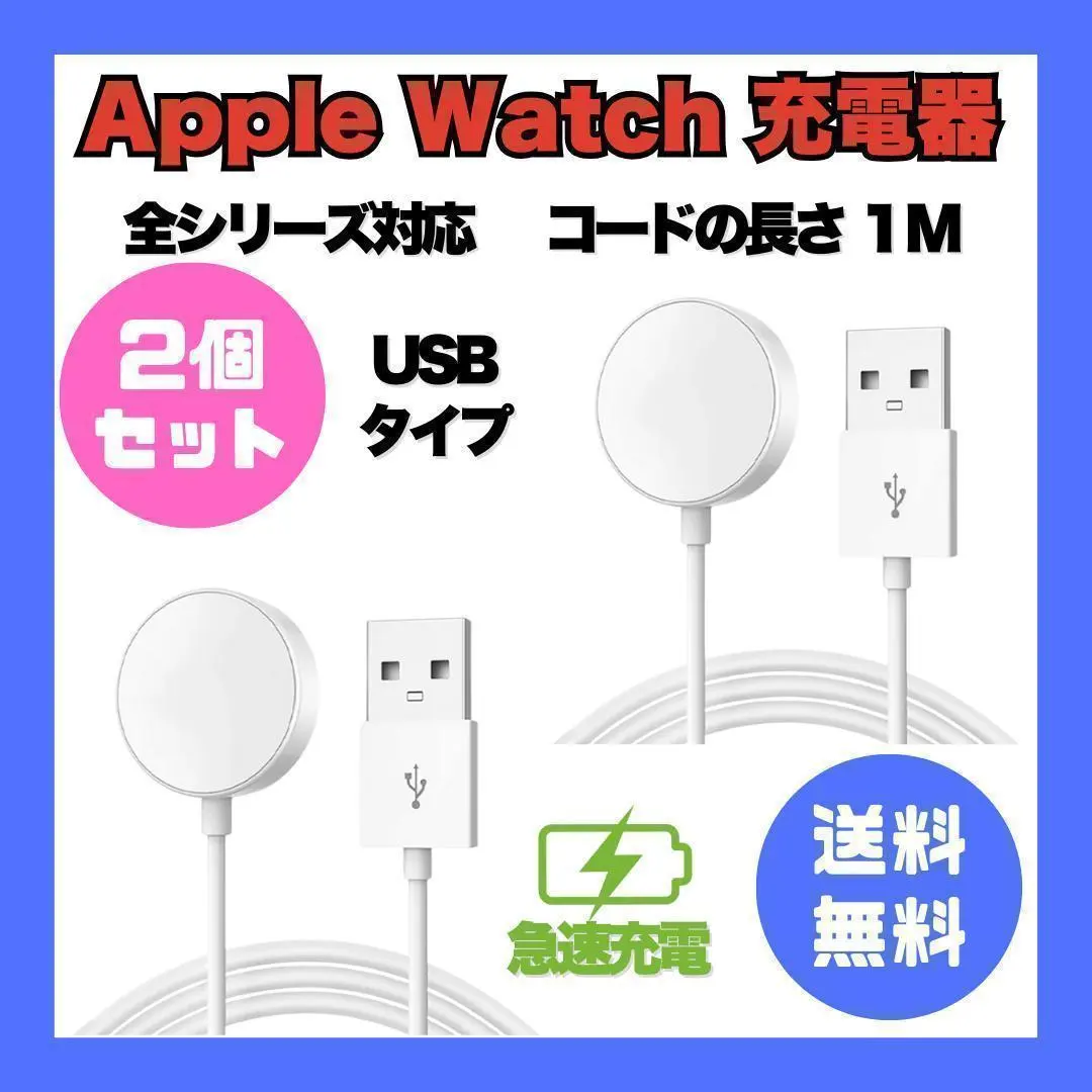 【2個セット】 アップルウォッチ USB充電器 コード1m 全シリーズ対応