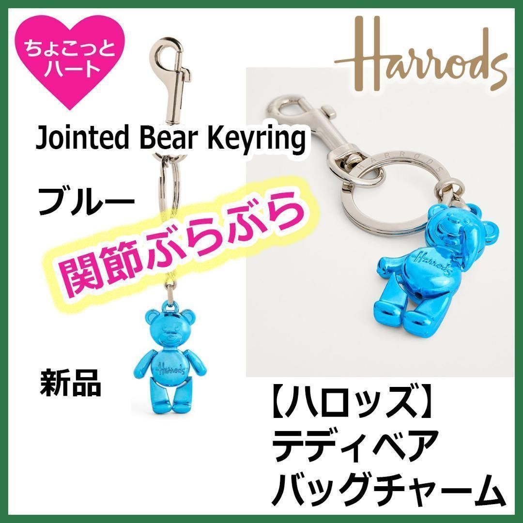 【Harrods】関節ぶらぶら テディベア(ブルー) バッグチャームキーリング