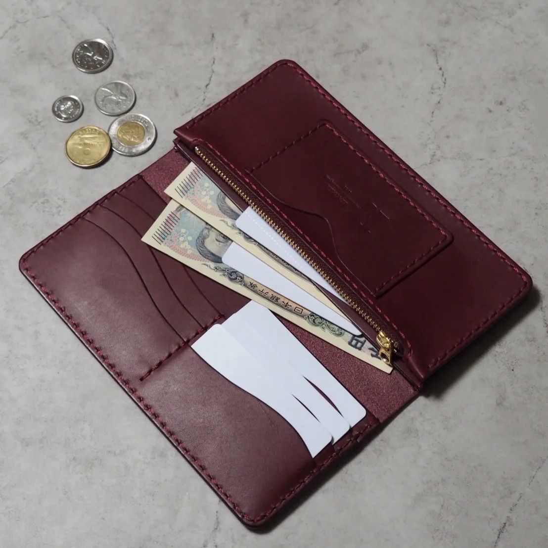 本革 ロングウォレット ブルガロ ワイン|イタリアンレザー 大容量 経年変化 長財布