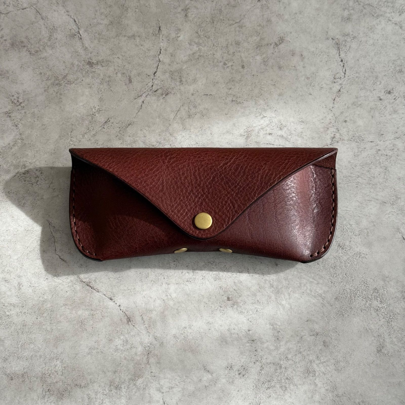 本革 メガネケース リネアヴァスカボックス ダークブラウン イタリアンレザー 経年変化 サングラスケース 真鍮金具