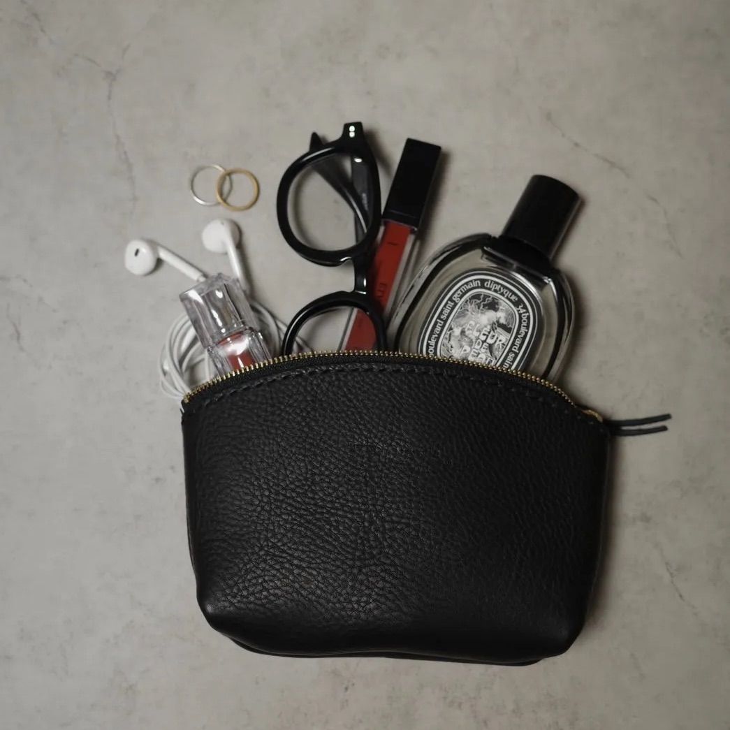 本革 ポーチ ブラック イタリアンレザー リネアヴァスカボックス 大容量 YKKファスナー 高級感 シンプル