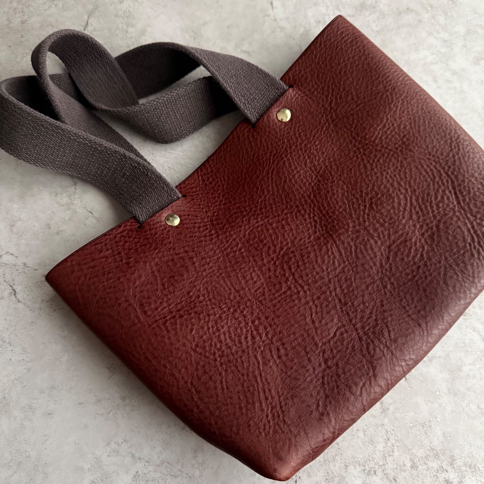 上質なシュリンクレザーのミニトート ダークブラウン|真鍮金具|経年変化を楽しむ革バッグ