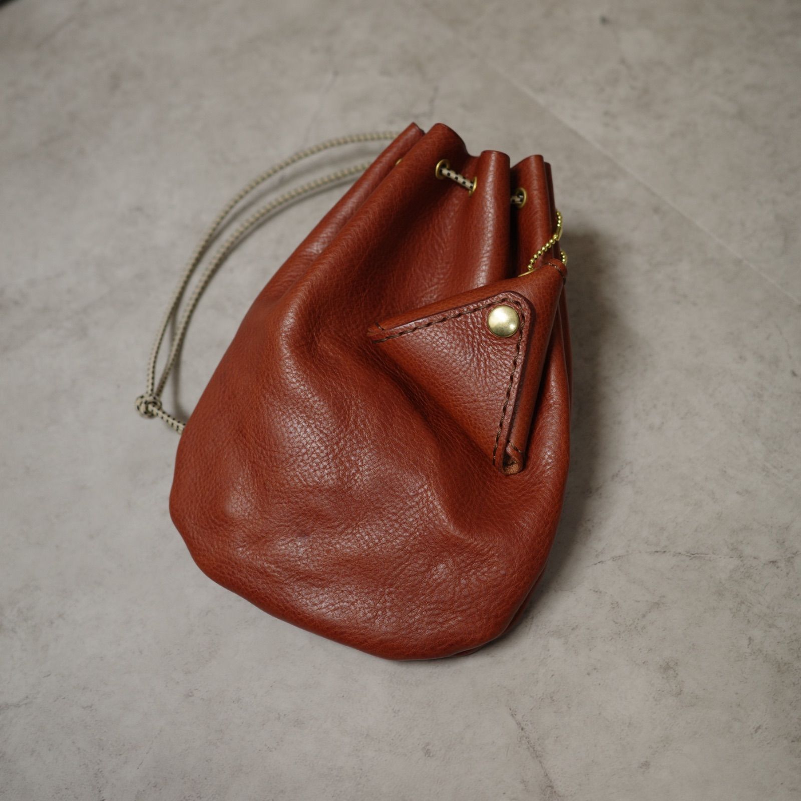 本革 巾着バッグ&三角コインケースセット|イタリアンレザー ネブラスカ シエナ