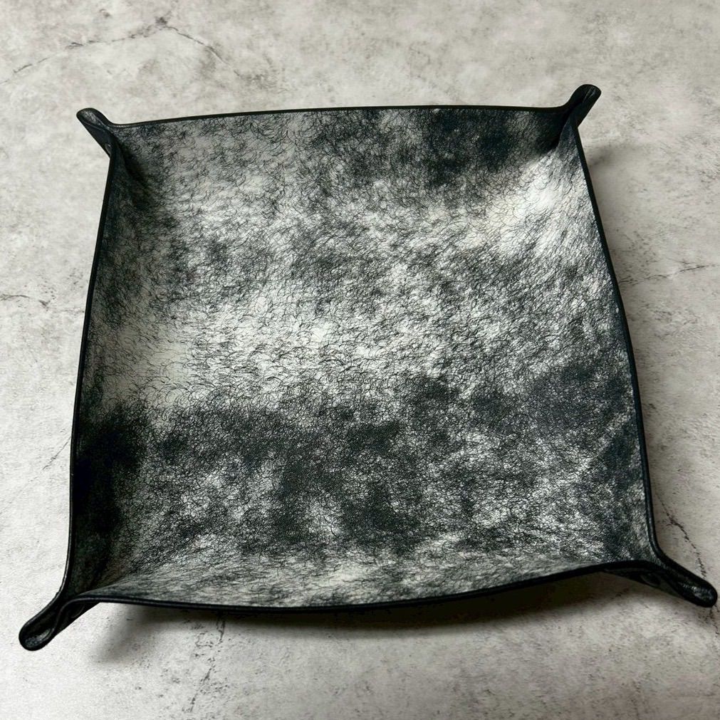 レザートレイ20cm角 空間を引き締める黒 本革 小物入れ 鍵置き アクセサリートレイ