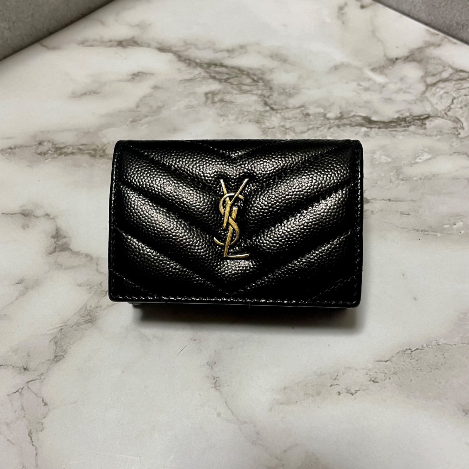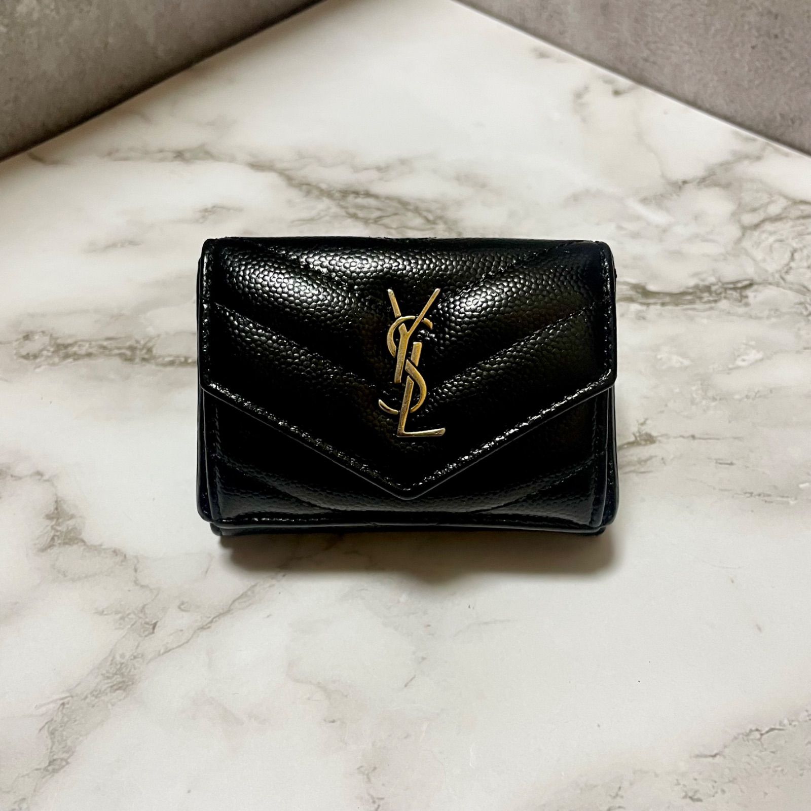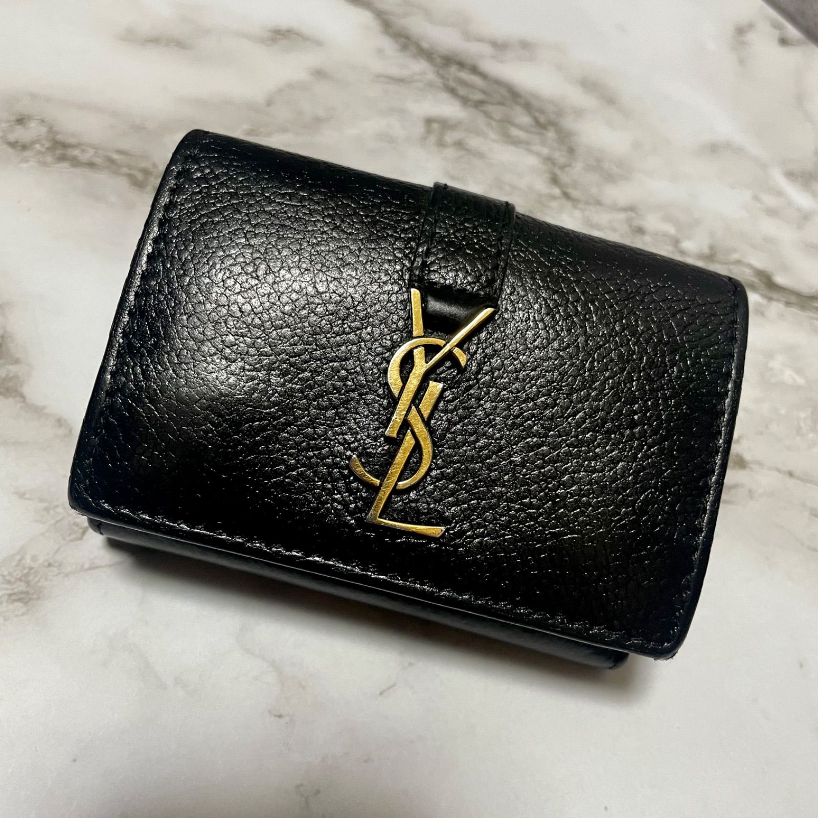 良品 SAINT LAURENT ミニ 三つ折り財布 YSL レザー