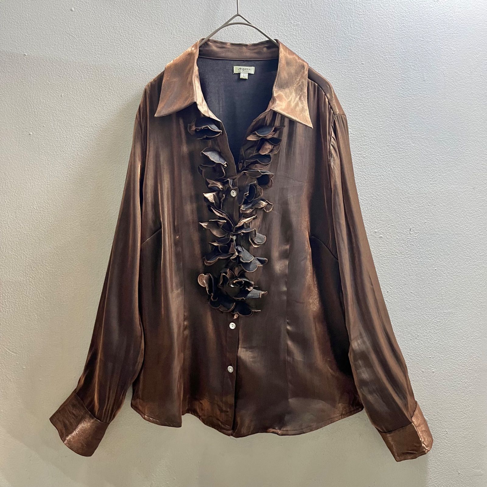 USA 90s 00s フリル シャツ ブラウス ヴィンテージ アメリカ Vintage 玉蟲 グロッシー ラッフル H953