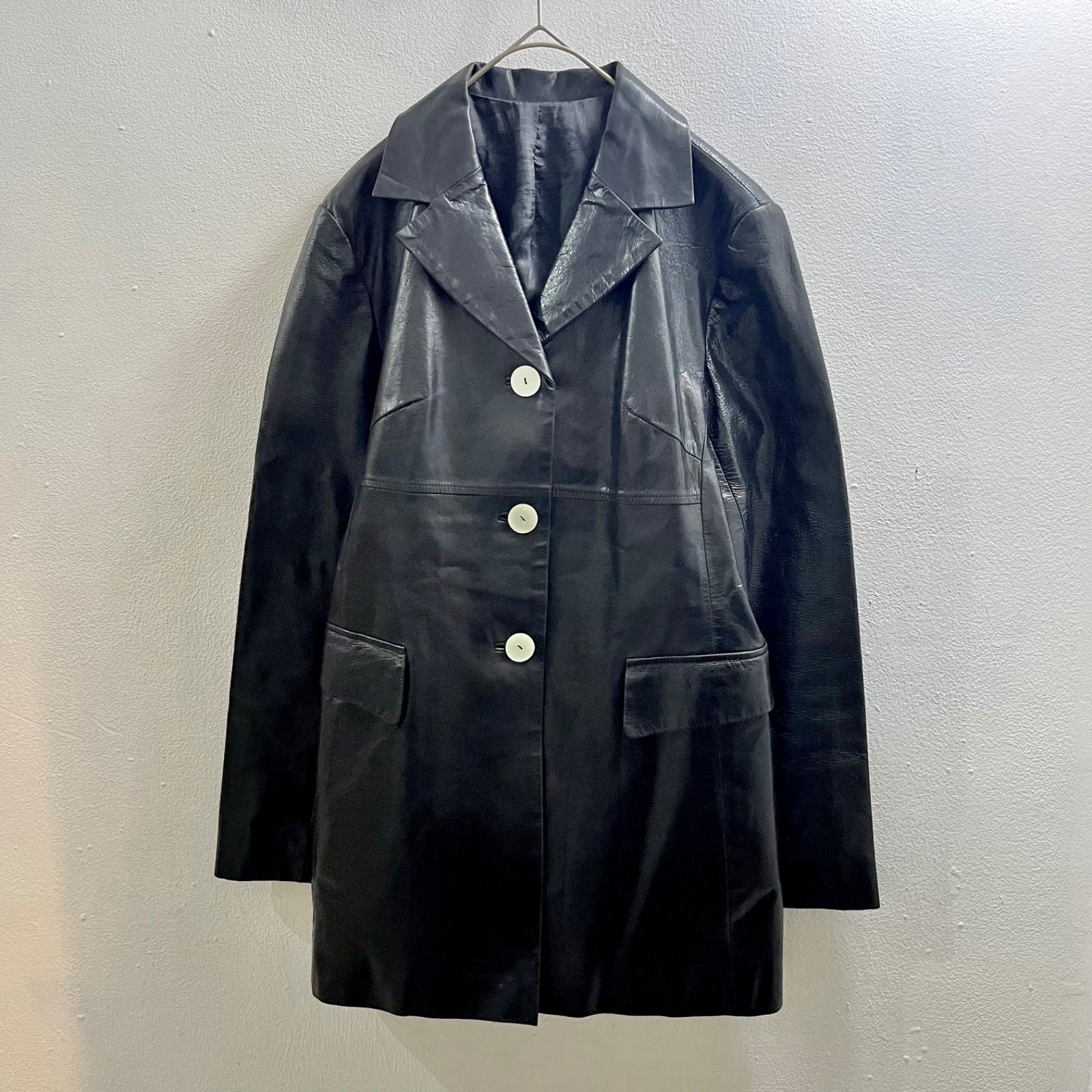 Vintage 90s レザージャケット 本革 テーラードジャケット ヴィンテージ ブラック 黒 H725