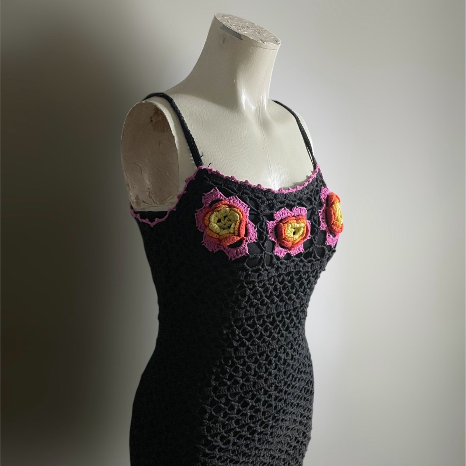 USA 00s クロシェ アメリカ ヴィンテージ ワンピース キャミソール レア 希少 花 ニット ドレス Vintage H818