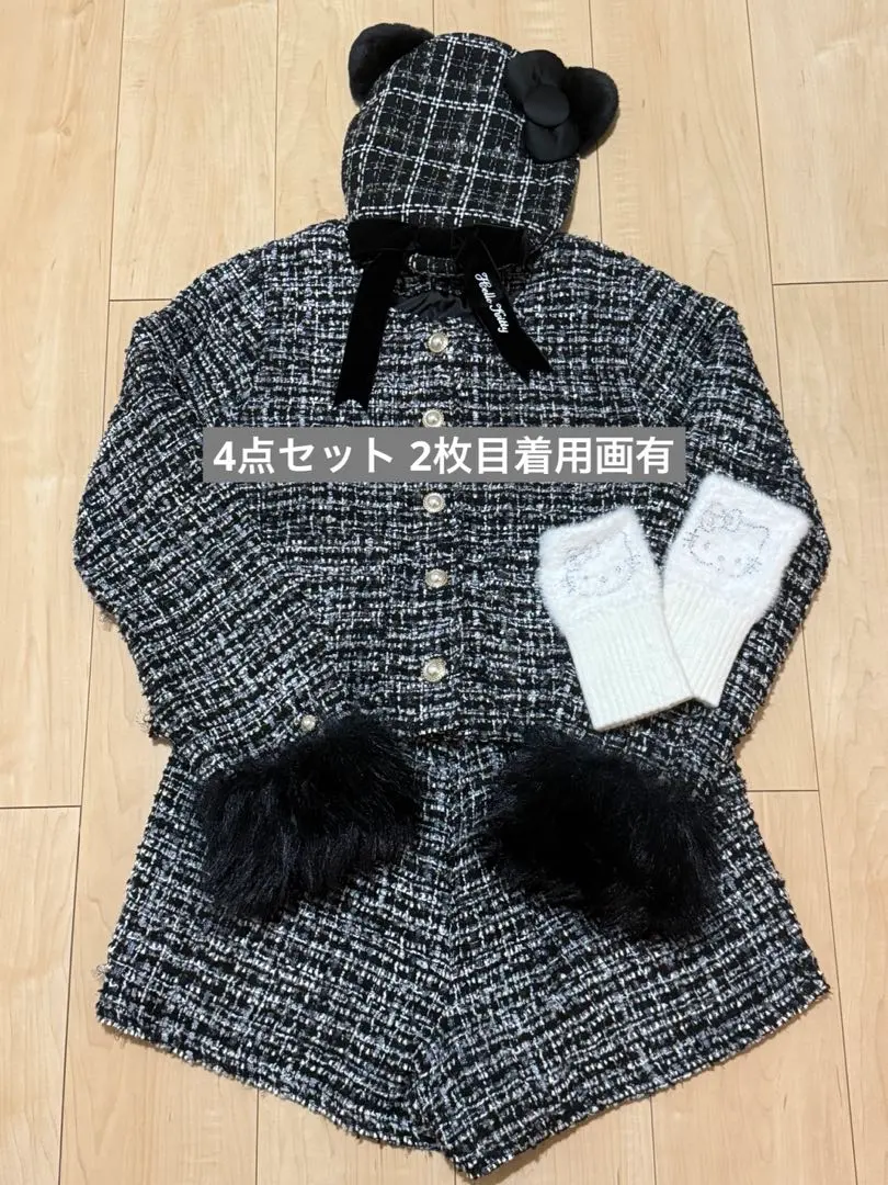 キティーベレー帽+ツイードセットアップ+キティー手袋 4点セット