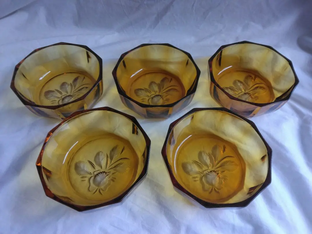⭐昭和レトロ⭐アンバーガラス 小鉢 中鉢 器 5点セット used品