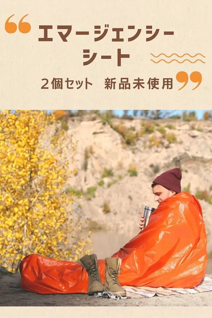 エマージェンシーシート 寝袋 災害 登山 2個セット 防寒 オレンジ