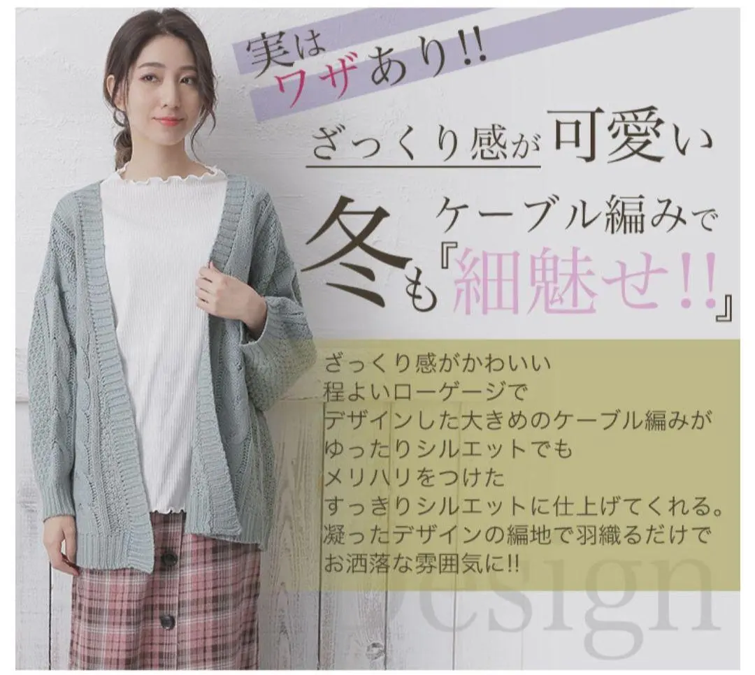 大きいサイズのケーブル編みのカーディガン