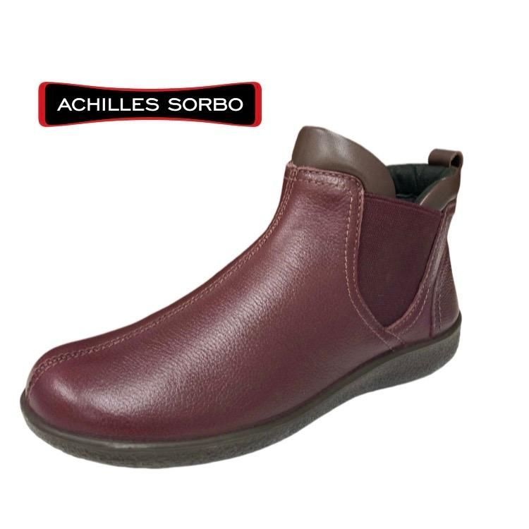 サイドゴア アキレスソルボ ASC 5360 バーガンディー 撥水加工 サイドゴアブーツ シンプル 幅広 3E 本革