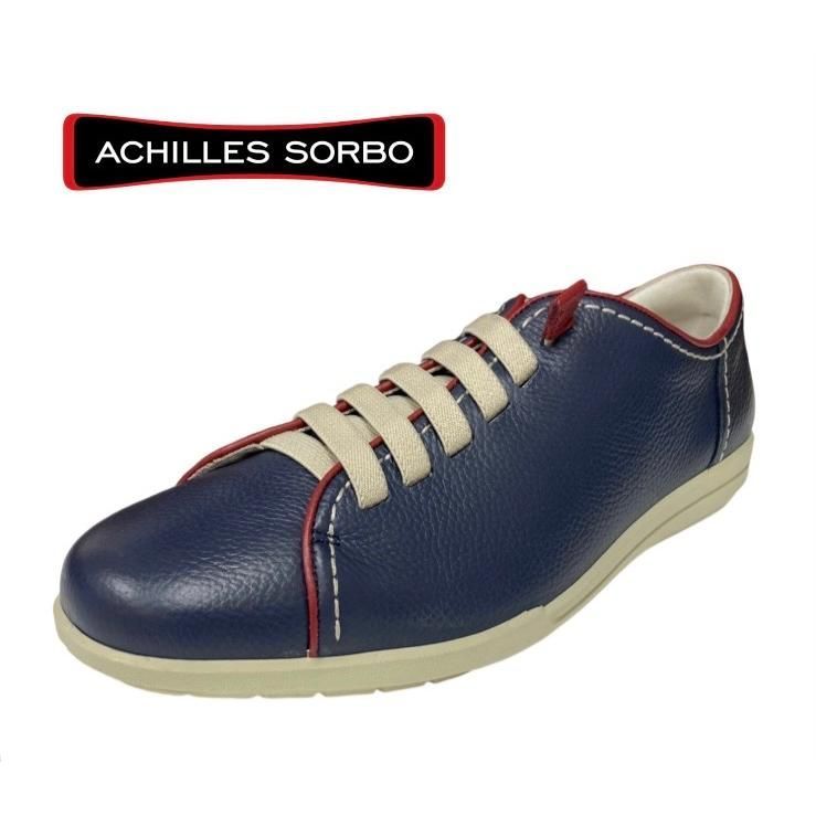 スニーカー 洒落カラー アキレスソルボ ASM 5660 ネイビー/トリコロール メンズ カジュアル 本革 ゴム紐 3E スリッポン
