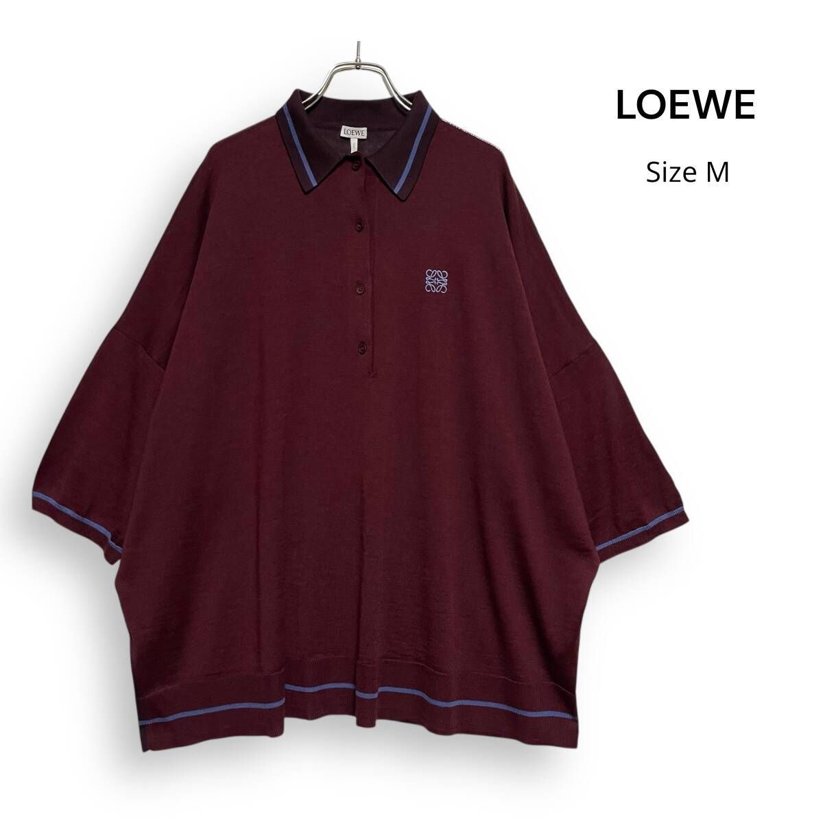 M26181/ LOEWE ロエベ アナグラム ロゴ刺繍 ウールニット オーバーサイズ ポロシャツ サイズM