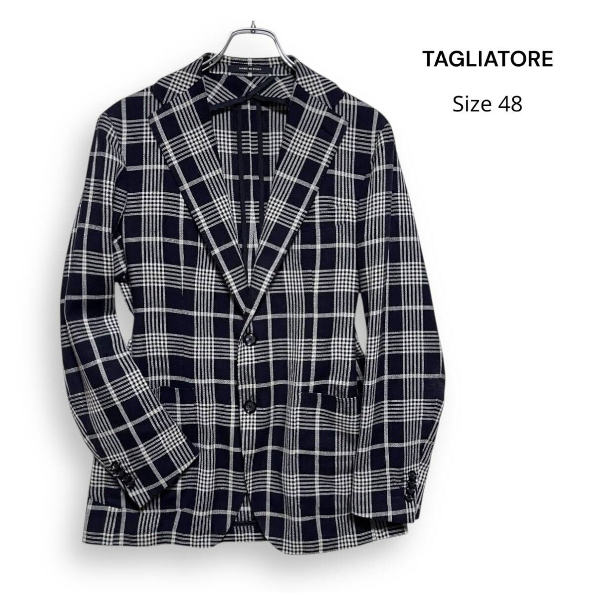 M26186/ TAGLIATORE タリアトーレ リネン コットン テーラード ジャケット チェック ネイビー サイズ48