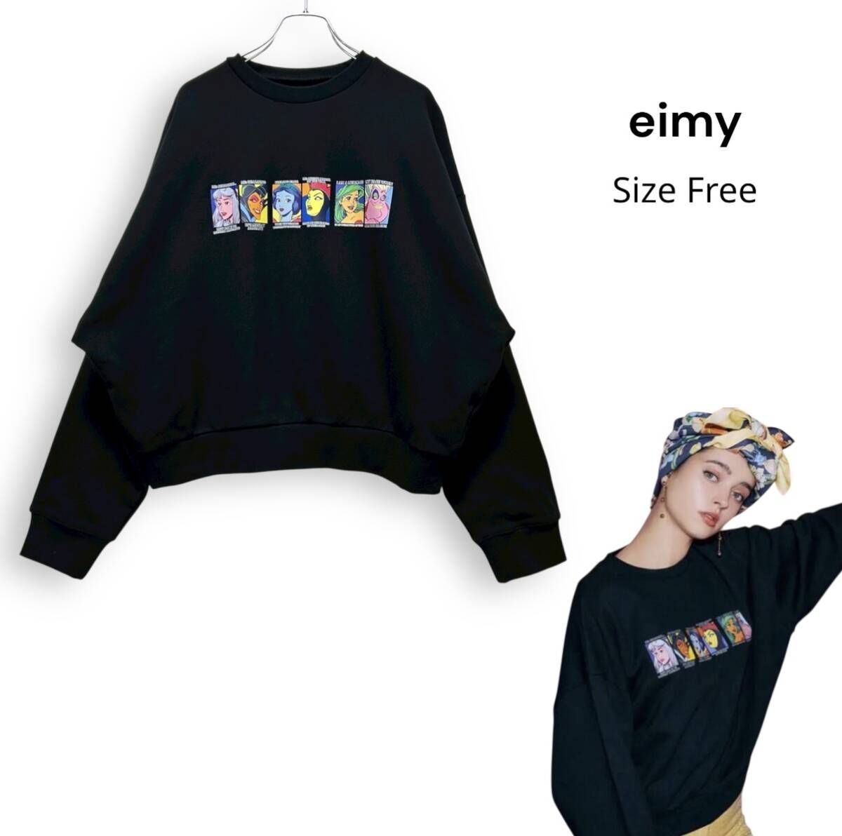 A2616/ eimy istoire エイミー ディズニー コラボ クルーネック スウェット 短丈 トレーナー ブラック